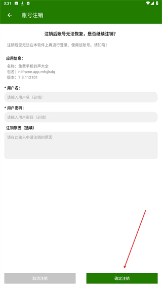 4、输入用户名、密码以及原因,再点击确定注销的按钮即可。