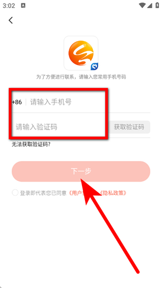 4、在注册页面,输入手机号,点击获取验证码,点击下一步。