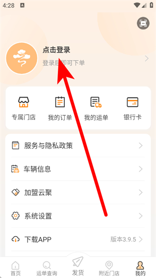 1、在云聚物流首页页面,点击底部我的,进入个人中心页面。