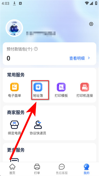 2、在个人中心页面,找到并点击地址簿功能入口。