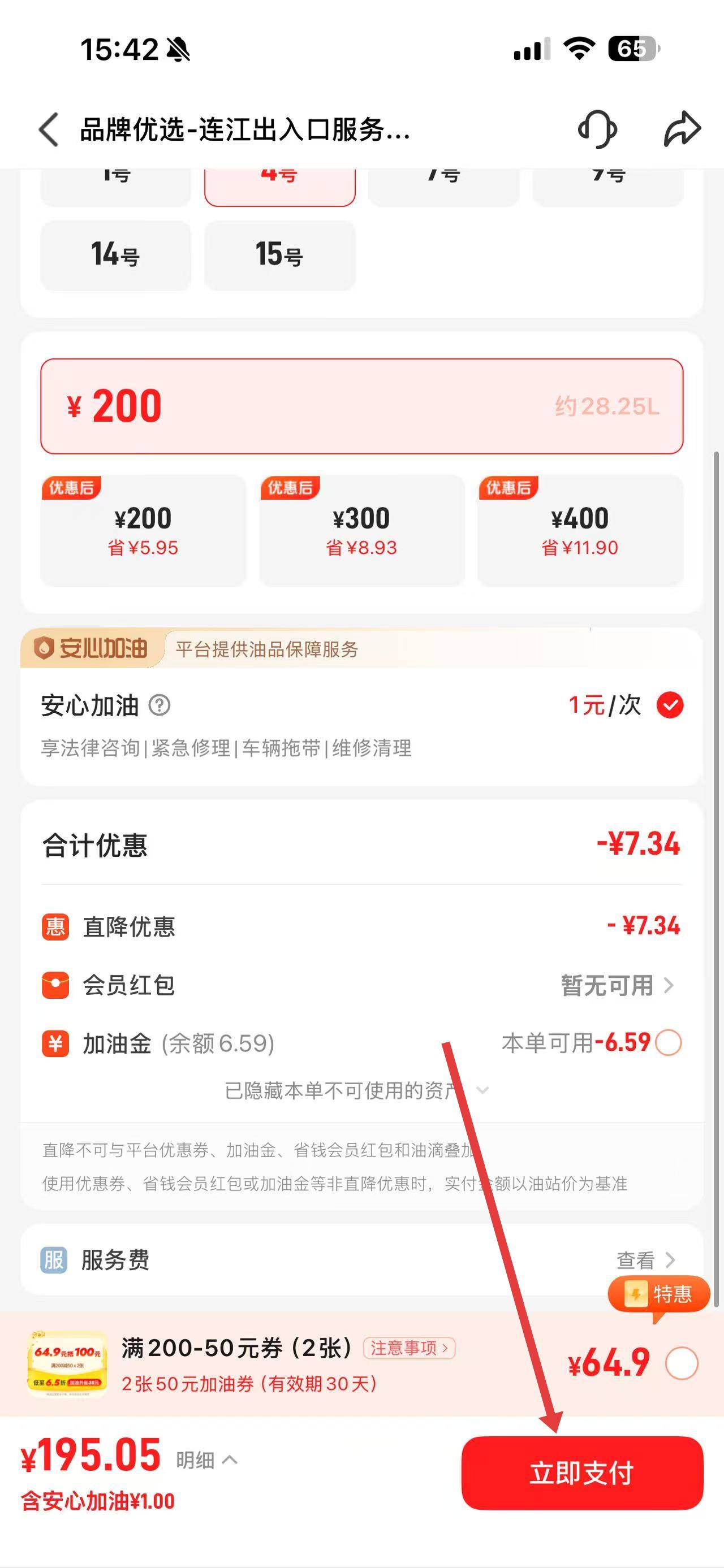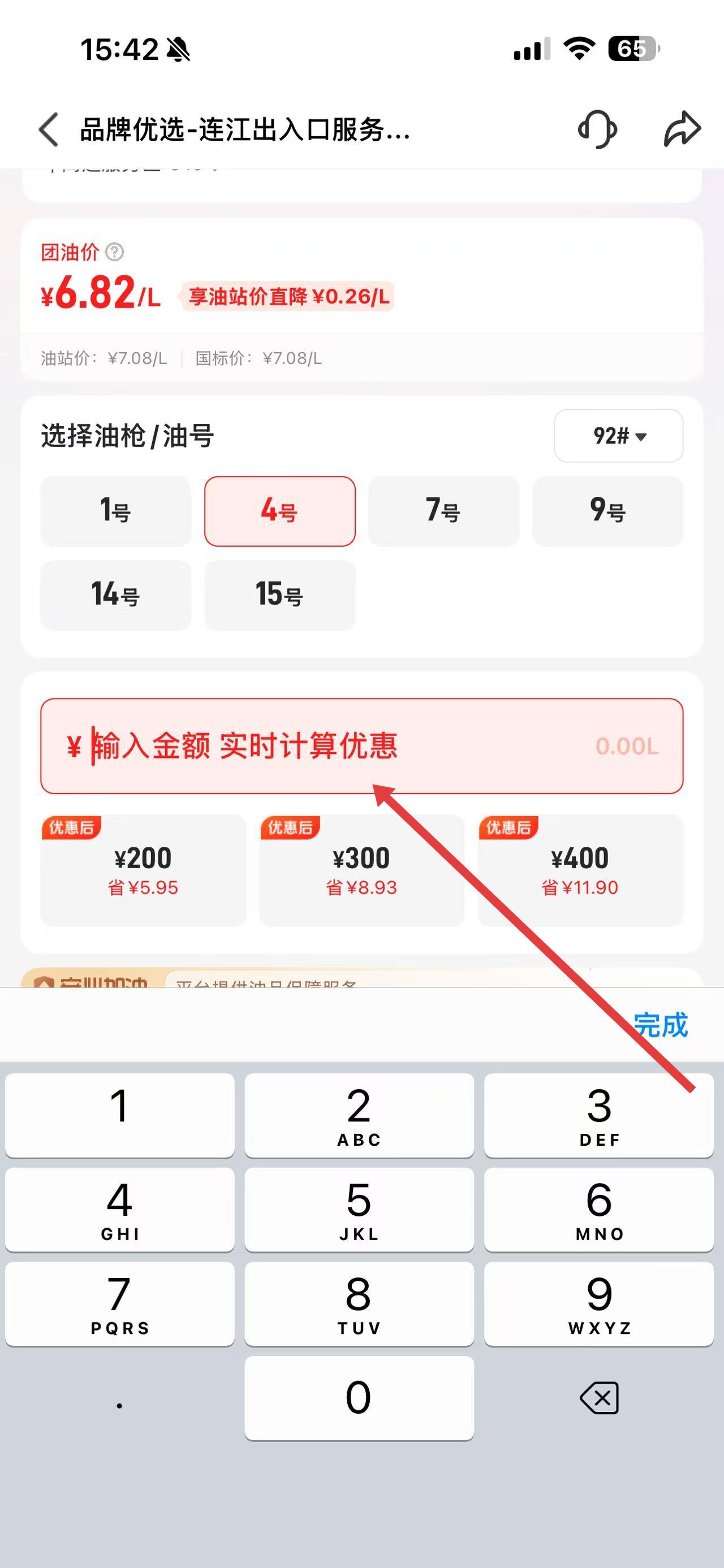 3、在金额输入框填加油钱数,查看显示的优惠后价格。