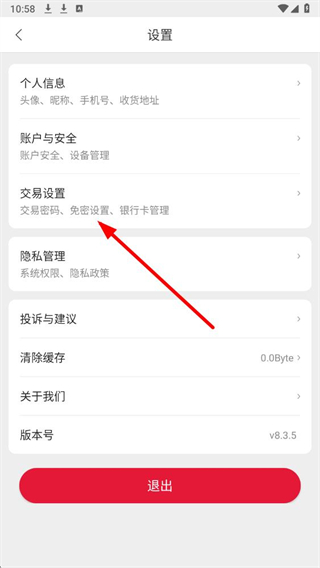 2、在设置页面中,找到交易设置选项,点击进入交易相关的设置界面。