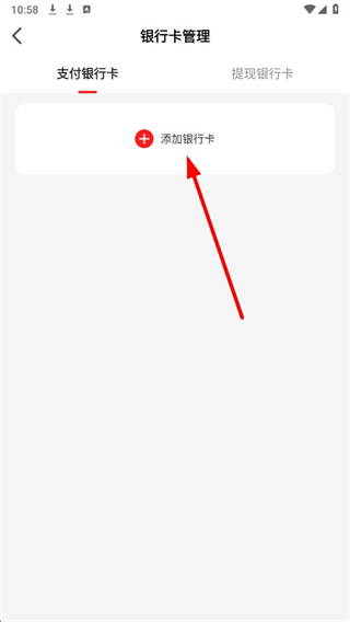 4、在银行卡管理界面,点击添加银行卡按钮,进入添加银行卡操作。