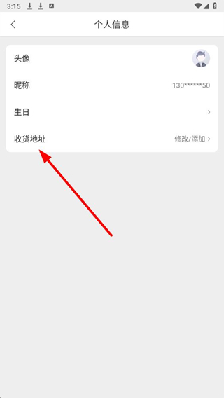 2、在个人信息页面,找到收货地址选项并点击,进入我的收货地址页面。