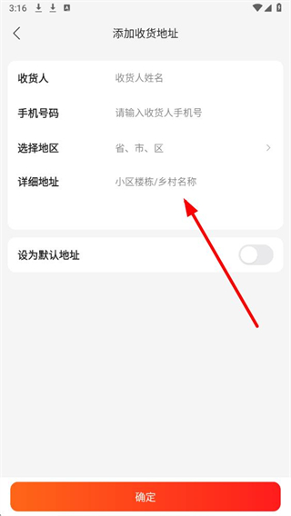 4、在添加收货地址页面,依次填写详细信息,点击确定完成收货地址添加。