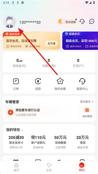 1、进入能链团油app,点击页面左上角的账号头像区域,进入个人信息页面。
