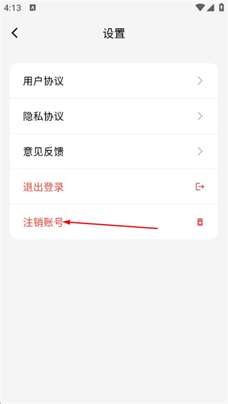 3、随后在设置页面中,点击注销账号选项,唤起确认的弹窗。