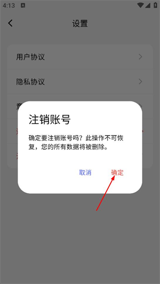 4、在注销账号的确认弹窗中,点击确定,完成账号注销操作。