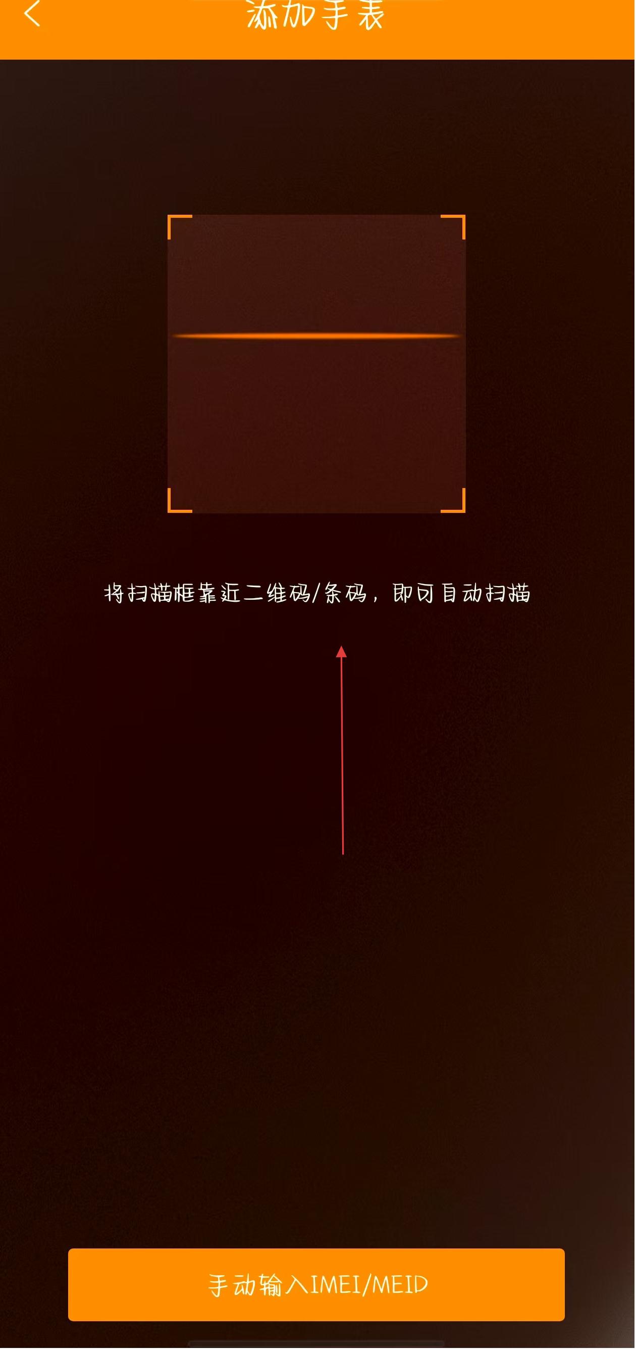 2、在添加手表界面,可将扫描框靠近手表的二维码/条码,自动扫描绑定。