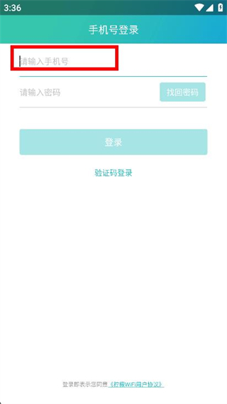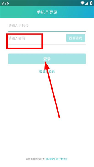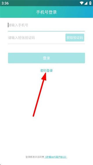 1、打开柠檬WiFi,点击下方密码登录选项。