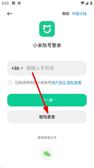 3、进入登录页面,找到并点击密码登录方式。