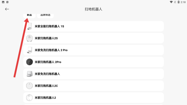 2、在扫地机器人型号页面中,点击新品按钮查看最新的扫地机器人型号。