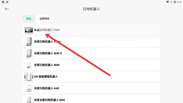 3、筛选出新品扫地机器人后,可以点击其中的有望扫地机器人T300进行添加操作。