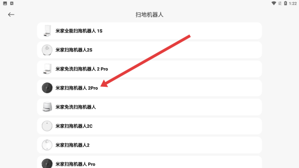 2、跳转到扫地机器人设备型号页面中,点击米家扫地机器人2Pro进行添加。