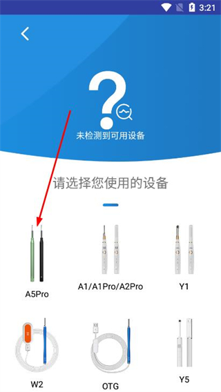 2、未检测到可用设备,在设备选择页面,挑选对应的设备型号。