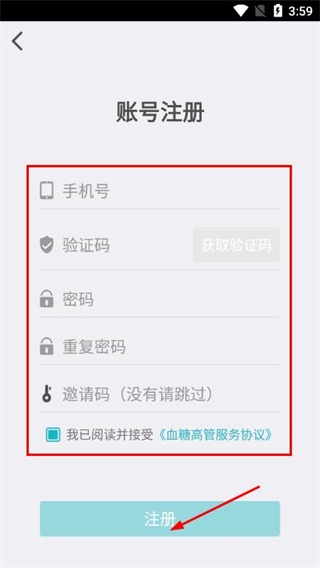 1、打开血糖高管APP,在登录界面弹出的隐私提示框中点击同意。