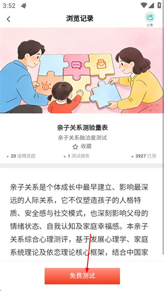 3、在测评详情页面,点击免费测试按钮,会跳转到登录页面。