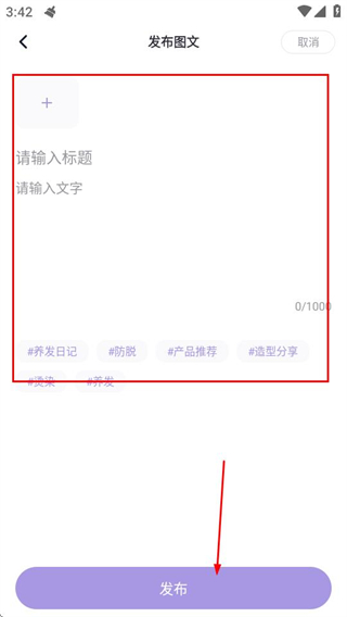 3、在发布图文页面,填写内容后,点击发布按钮即可发布帖子。