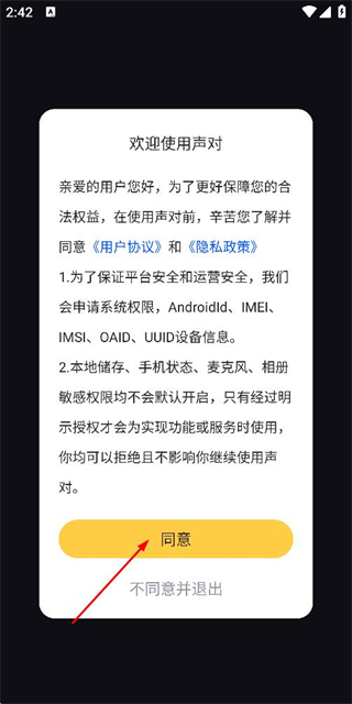 1、在使用协议隐私政策弹窗中点击同意按钮,进入登录页面。