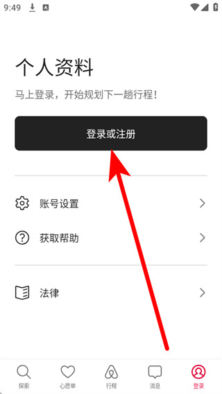 3、在个人资料页面点击登录或注册,进入账号登录注册界面。