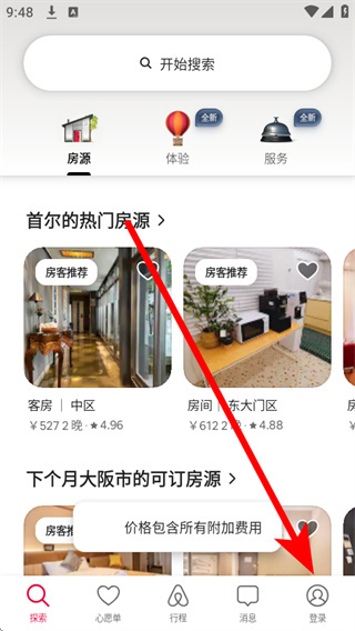 1、打开Airbnb,在隐私政策页面点击同意,进入应用主界面。