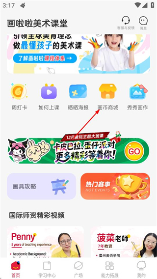 1、进入画啦啦少儿美术后,点击画币商城选项,可进入画币兑换页面。
