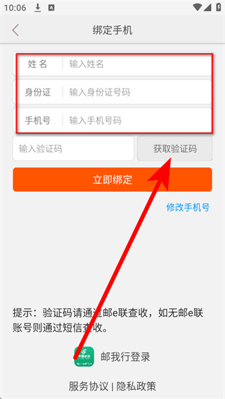 4、将收到的验证码填入验证码框,最后点击立即绑定,完成手机号码的修改。