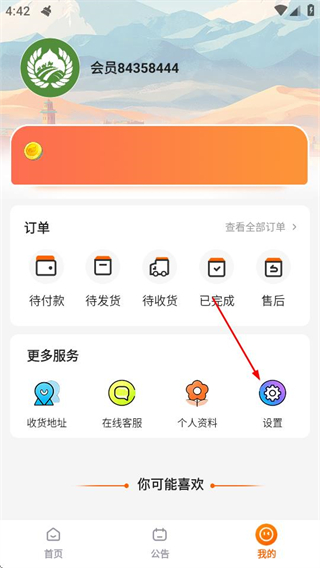 2、在个人中心页面,点击设置选项,可进入隐私设置页面。