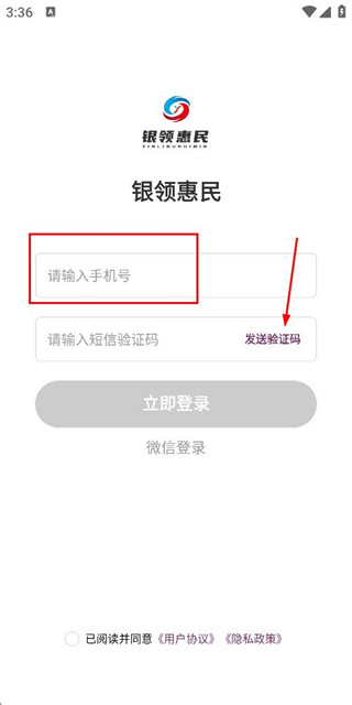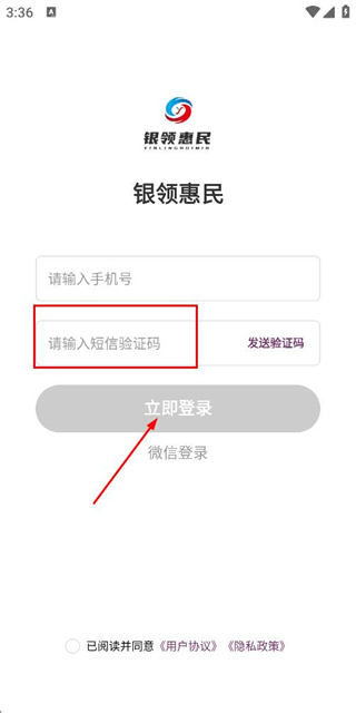 2、在登录页面填写手机号,勾选协议后,点击发送验证码。