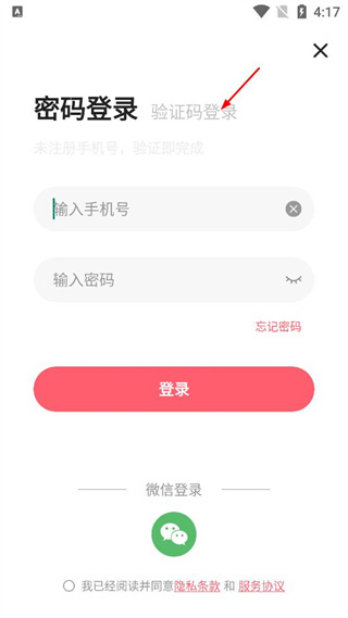 2、进入登录页面后,找到验证码登录选项,点击该选项切换到验证码登录界面。