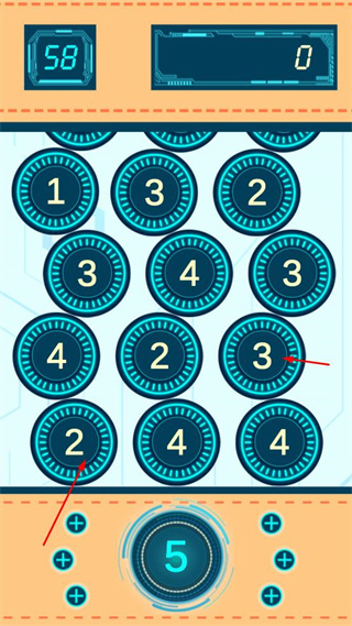 3、在练习关卡中,选择数字2和3,使其相加结果匹配页面下方的目标数字5。