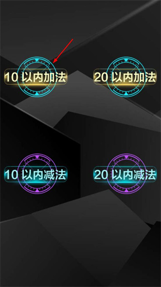 2、进入功能选择页面后,找到10以内加法选项,点击该选项进入对应的练习关卡。