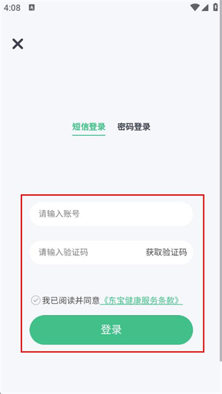 3、输入账号、获取并填写验证码,勾选协议后点击登录。