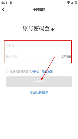 3、在账号密码登录页面,填写手机号和密码后,点击立即登录,完成登录。