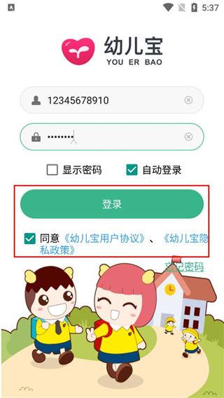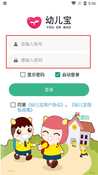 2、进入后看到幼儿宝的登录界面,找到请输入账号和请输入密码的输入框。
