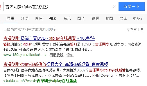 如果没有你,但是你又想看的资源你就可以直接在百度上搜索想看的并在后面加上“xfplay在线播放”即可