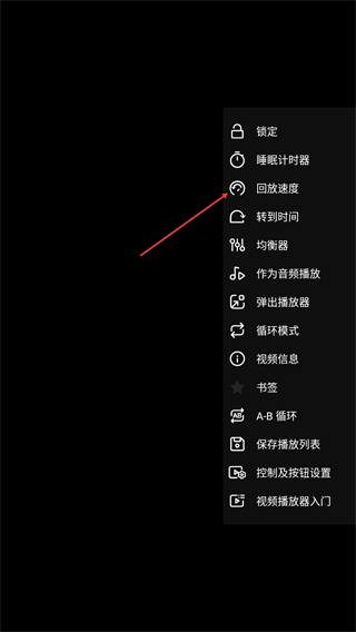 4、在左侧弹出的菜单栏中,点击回放速度的按钮。