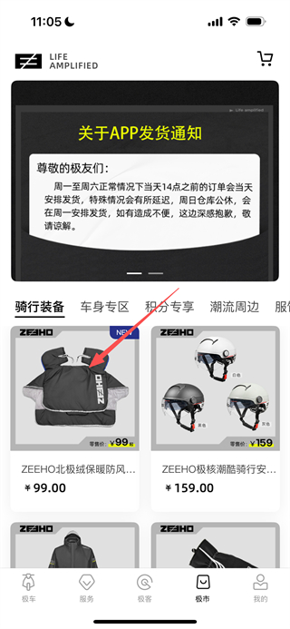 1、进入ZEEHO后,点击底部的极市选项,可进入极市商品页面。
