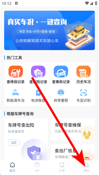 1、在车辆维保记录查询页面,点击底部我的,进入个人中心页面。