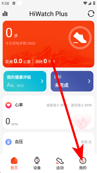 1、在hiwatchplus首页,点击底部我的,进入个人中心页面。