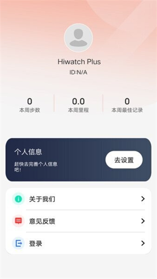 hiwatchplus智能手表是一款面向智能手环与手表用户打造的运动健康管理工具,可清晰查看本周步数,运动里程与各项运动最佳记录,整合运动数据统计、健康指标监测、运动记录查阅、数据趋势分析、健康目标规划等核心功能,破解运动数据零散、健康管控无方向等痛点,是大众监测运动状态、管理健康数据的专业实用工具。