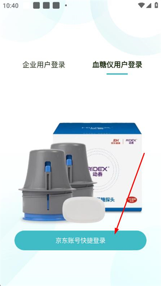 2、在登录界面切换到血糖仪用户登录选项卡,点击京东账号快捷登录。