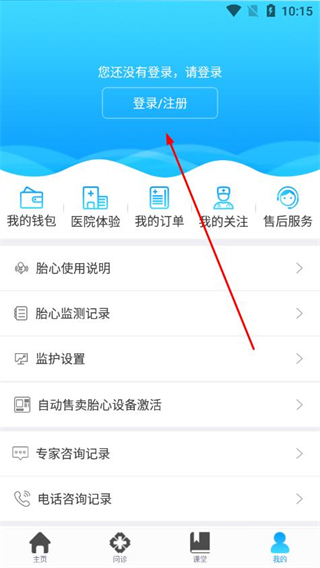 2、在我的页面点击登录/注册,进入用户登录界面。