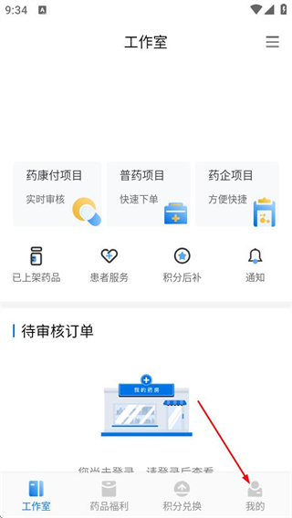 1、在康付药师首页,点击底部的我的选项,可进入个人中心页面。
