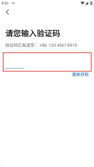 4、进入请您输入验证码页面,在输入框填写收到的验证码,完成账号注册的验证步骤。