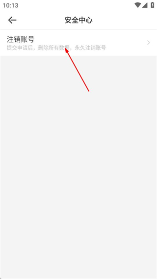 5、在安全中心页面,点击注销账号选项,可进入注销账号说明页面。