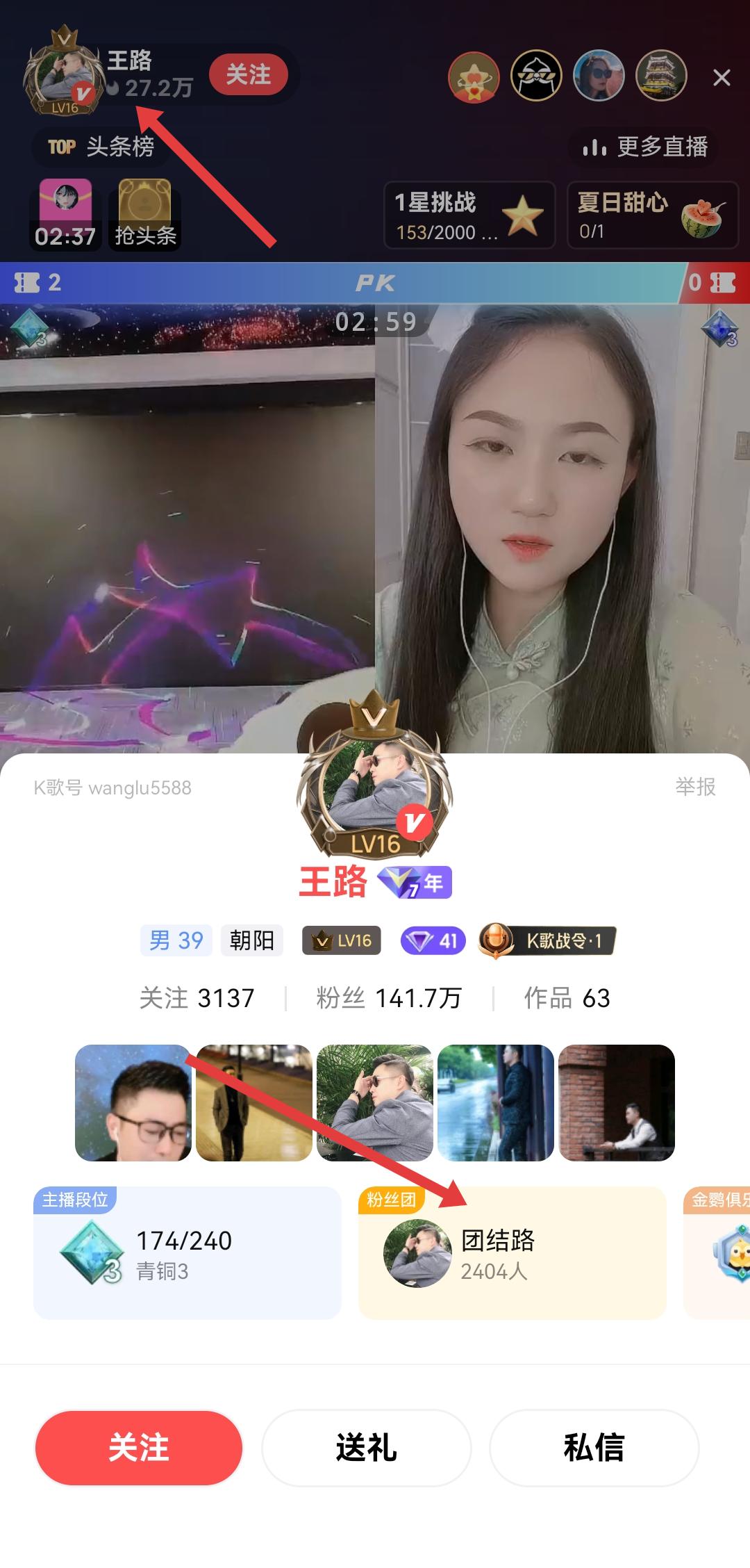 1、进入主播王路的直播间,这是找到粉丝团入口的前提,确保在直播界面中定位到目标主播。