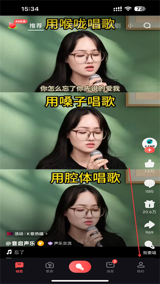 1、打开全名k歌的APP,进入首页点击右下我的图标。