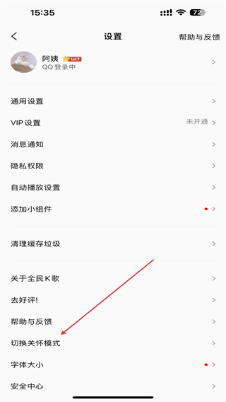 3、进入设置的界面内,找到并点击切换关怀模式的按钮。
