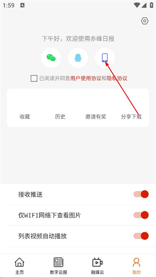 1、在赤峰日报首页,点击底部的我的选项,进入个人中心页面。